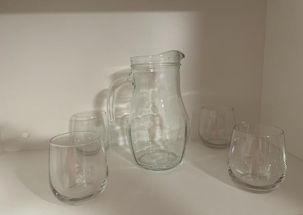 Kitchenette, Refrigerator, Microwave, Washing machine, Kitchen, Electric kettle, Kitchenware, Dryer, Oven, Stovetop, Coffee machine, Dining table, Wine glasses